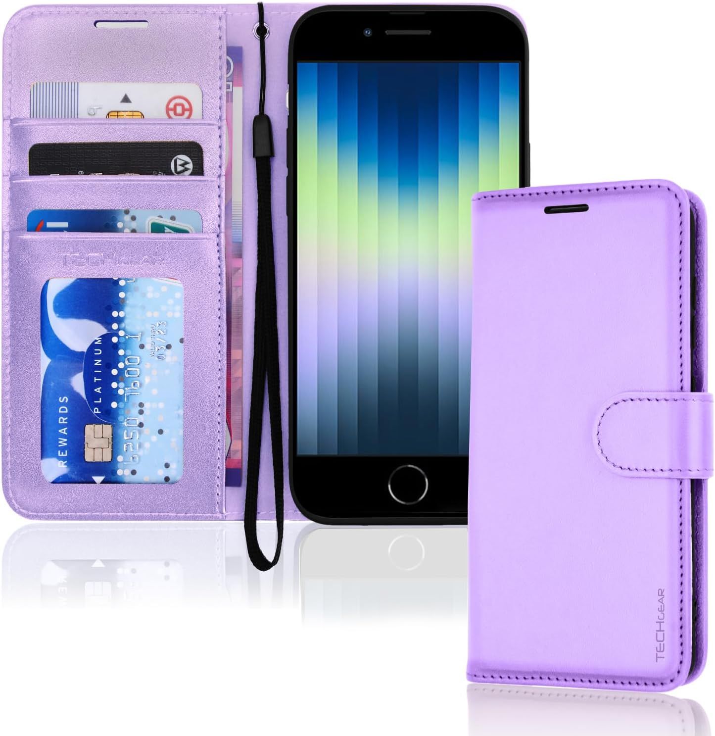 Iphone Se 2022 5g / 2020 Leather Wallet Case Iphone 8/7/6 Flip Case Wallet Card Holder Stand Wrist Strap Lilac Pu Leather Magnetic Closure For Iphone Se 3/Se 2/Iphone 8