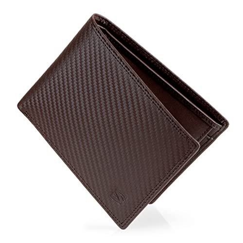 SERASAR | Brun Porte-Feuille [Carbon] en Cuir pour Hommes | avec Protection RFID Blocage | Carbon Homme Cadeaux Besace Porte-de-Billets Porte-Monnaie Pochette Sécurisé Wallet Leather