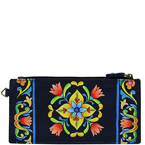 Anna by Anuschka Hand Painted Leather Women's Wallet, Portefeuille Organiseur | Cuir véritable Femme, Carreaux toscans, Taille Unique