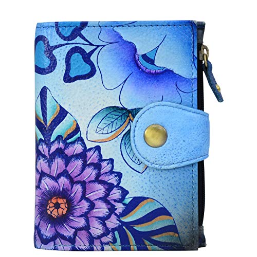 Anna by Anuschka Women's Hand Painted Leather Ladies Wallet, Œuvre Originale Peinte à la Main Femme, Summer Bloom Blue, Taille Unique