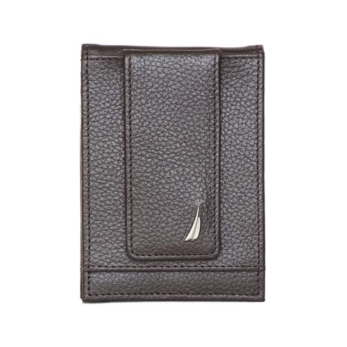 Nautica Men's Front Pocket Leather Wallet and Money Clip, with 6 Slots, ID Window, and RFID Protection, Brown