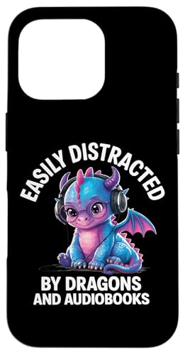 Easily Distracted by Dragons and Audiobooks Livre Audio Coque pour iPhone 16 Pro Max