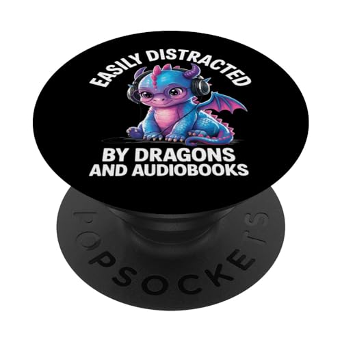 Easily Distracted by Dragons and Audiobooks Livre Audio PopSockets PopGrip Adhésif