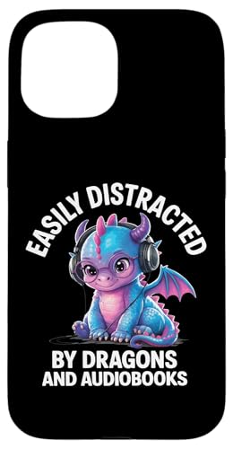 Easily Distracted by Dragons and Audiobooks Livre Audio Coque pour iPhone 15