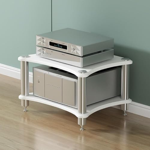 Support de rangement compact à 2 niveaux pour amplificateur de casque et lecteur CD, design peu encombrant, parfait pour les petits espaces, solution de support AV pour les amateurs de musique
