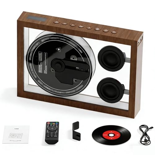 Haut-Parleur VintageVinyl Wave, Lecteur CD Portable en Forme de Tourne-Disque, Petit Haut-Parleur Stéréo sans Fil Multifonction 3 en 1 avec Veilleuse Ambiante, Gfit pour Les Amis