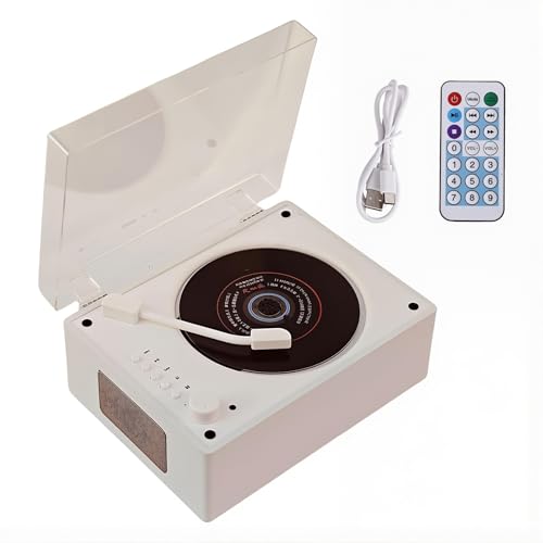 Petit Lecteur CD Vintage pour Maison, Compatible avec Supports NuméRiques sans Fil Et USB/Mp3, Radio FM, Prise Casque, Lecteur CD Portable avec éCran Et TéLéCommande pour Divertissement,White