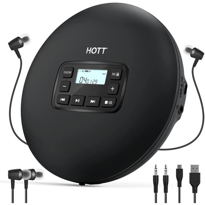 HOTT CD204 Lecteur CD portable lecteur CD personnel compact avec écran LCD anti-saut-anti-choc petit lecteur CD de musique Walkman
