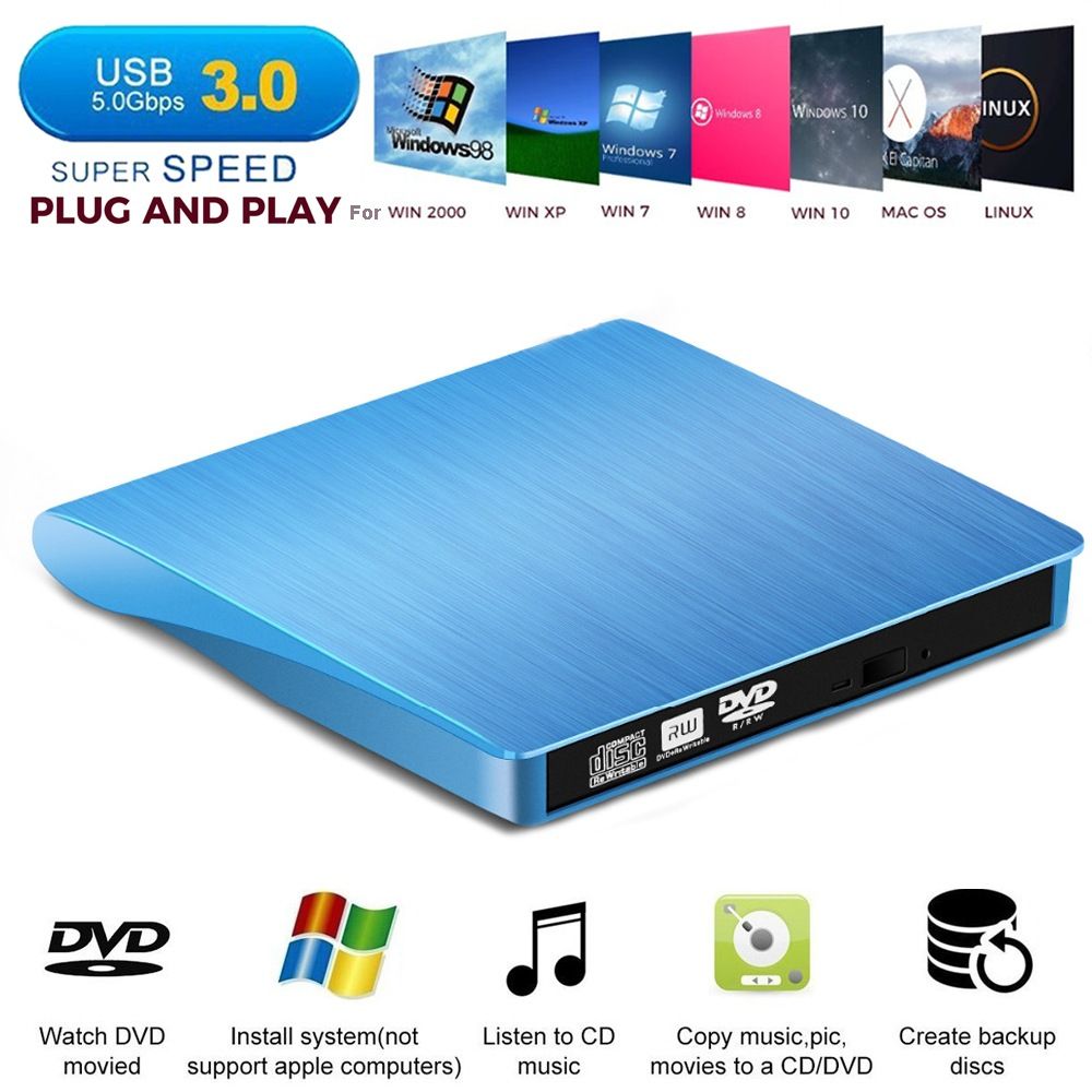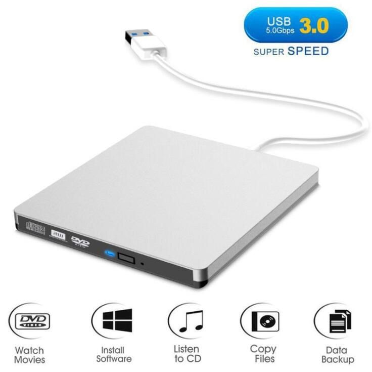 Lecteur CD/DVD Externe USB 3.0 Type-C, Optique Portable for Ordinateur, Graveur Gain De Place(White)