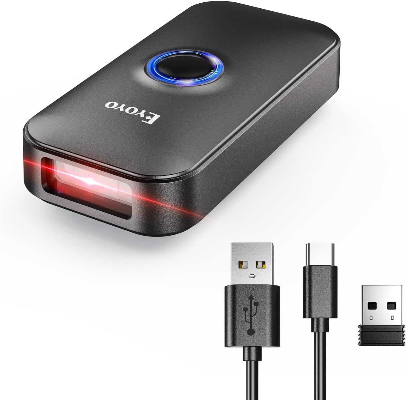 Eyoyo Scanner de Code-Barres 2D en Forme d'anneau pour Doigt, Mini Portable 3-en-1 USB Filaire, 2.4G sans Fil et Bluetooth, Lecteur 1D, QR, PDF417, Data Matrix pour iPad, Smartphone, PC.