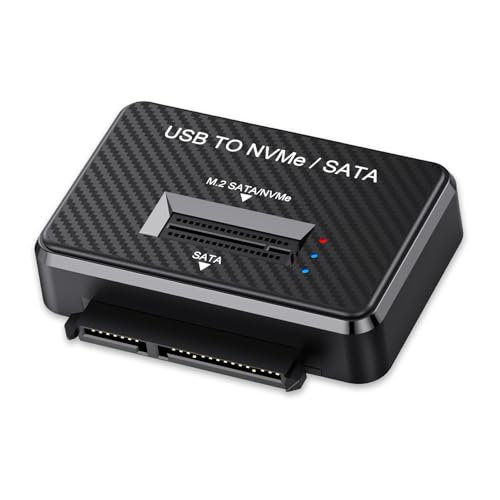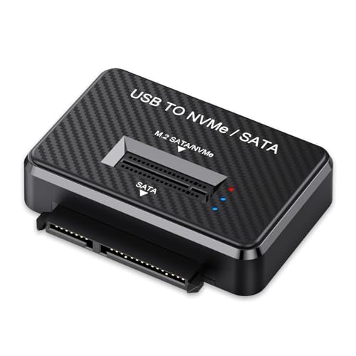 Boîtier SSD NVMe, Adaptateur USB vers M.2 et SATA 10Gbps, Lecteur de Disque Dur Externe PCIe NVMe Gratuit, Compatible avec M.2 (Touches M et M+B), Toutes Tailles et SSD/HDD SATA 2,5"/3,5"