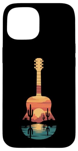 Art de Guitare Sunset Cactus Desert pour Lecteur de Musique Occidental Coque pour iPhone 15