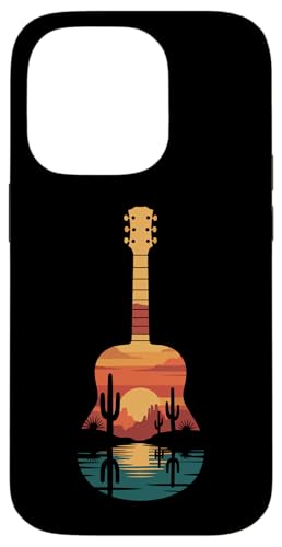 Art de Guitare Sunset Cactus Desert pour Lecteur de Musique Occidental Coque pour iPhone 14 Pro