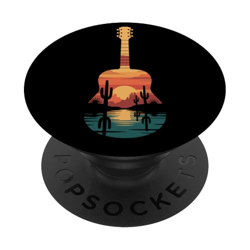 Art de Guitare Sunset Cactus Desert pour Lecteur de Musique Occidental PopSockets PopGrip Adhésif