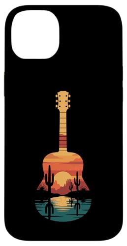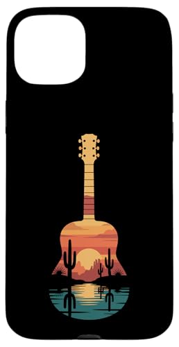 Art de Guitare Sunset Cactus Desert pour Lecteur de Musique Occidental Coque pour iPhone 15 Plus
