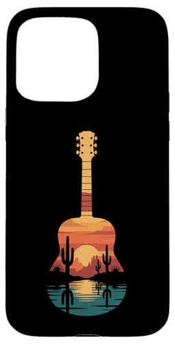 Art de Guitare Sunset Cactus Desert pour Lecteur de Musique Occidental Coque pour iPhone 15 Pro Max