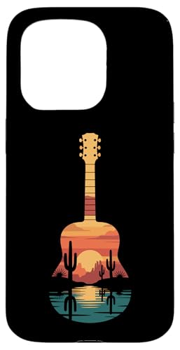 Art de Guitare Sunset Cactus Desert pour Lecteur de Musique Occidental Coque pour iPhone 15 Pro