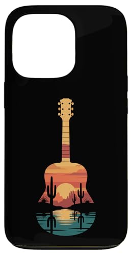Art de Guitare Sunset Cactus Desert pour Lecteur de Musique Occidental Coque pour iPhone 13 Pro