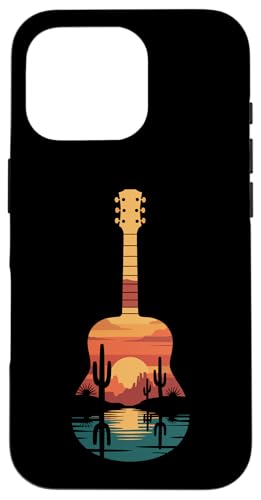 Art de Guitare Sunset Cactus Desert pour Lecteur de Musique Occidental Coque pour iPhone 16 Pro