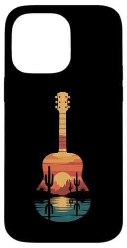 Art de Guitare Sunset Cactus Desert pour Lecteur de Musique Occidental Coque pour iPhone 14 Pro Max