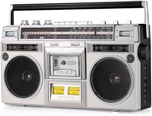 Boombox rétro années 80 avec Bluetooth et lecteur CD – Radio stéréo portable avec enregistreur cassette, entrée USB/SD pour les réunions de famille et les voyages