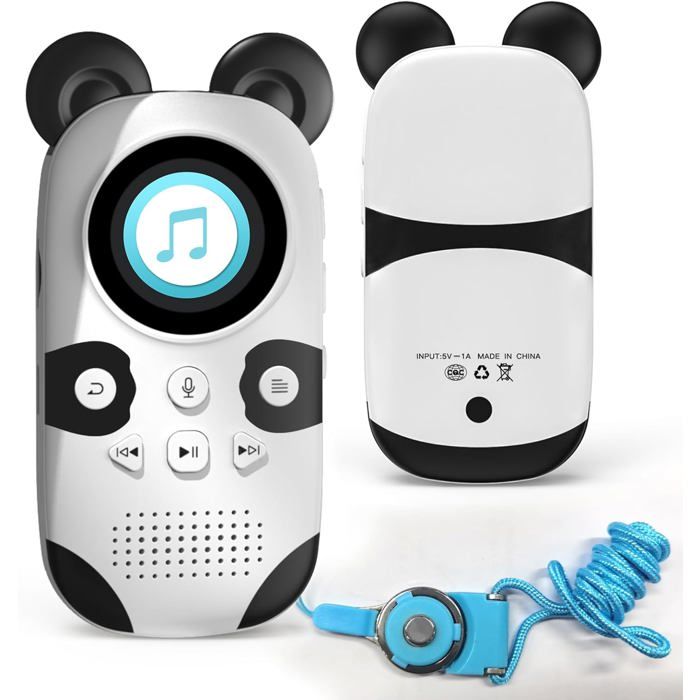 64Go Lecteur mp3 Enfant Bluetooth 5.3,Lecteur de Livre Audio,Haut-Parleur, Corde de Suspension,Panda de Dessin animé Portable et Mignon pour Enfants,Son sans Perte HiFi, Radio FM,Enregistrement