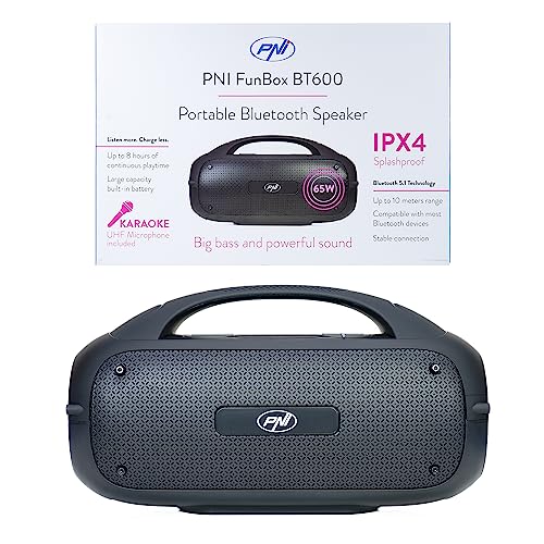 PNI FunBox BT600 Haut-Parleur Portable Bluetooth 65 W Lecteur MP3 Lecteur de Cartes USB Microphone sans Fil Batterie 4400 mAh IPX4