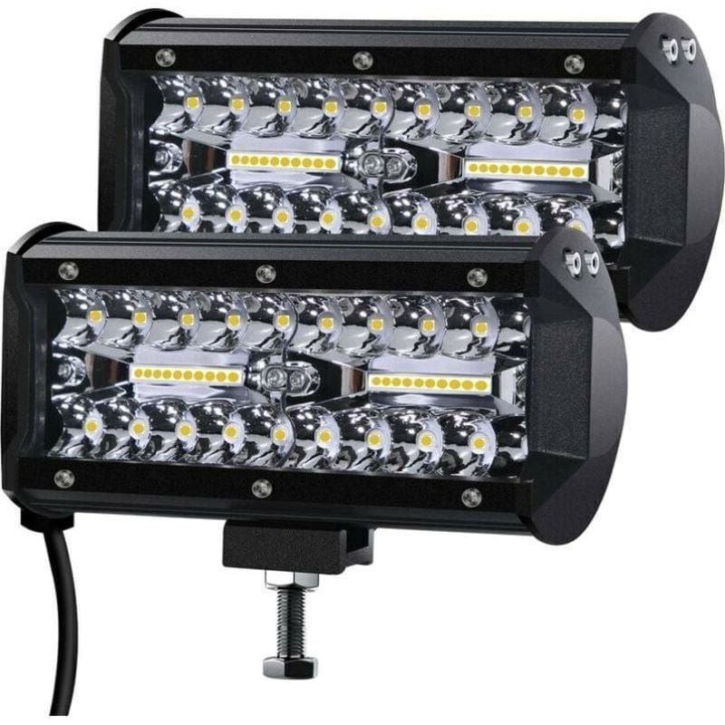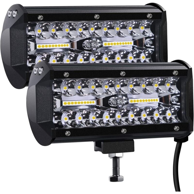 SKYWORLD Phare de Travail Led Tracteur 2PCS 120W 17.8cm Projecteur LED Voiture 12V Barre Lumière de Travail LED Feux de Travail avec 12V Rocker Câblage pour 4X4 Voiture Camion SUV Bateau