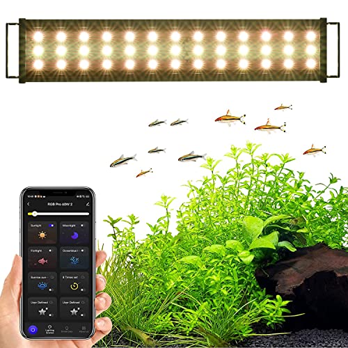 LED Aquarium Smart Éclairage Aquarium, Bluetooth Smart APP Control Fish Tank Light, 50W RGBW Spectre Complet Lumiere Eclairage, Mode programmable DIY, avec Minuterie,Convient 120-140cm aquariums.