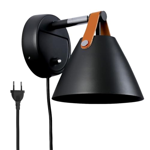B·LED BARCELONA LED BarcelonaLED Applique Murale avec Câble et Interrupteur Prise Nordique Blanche avec Bracelet en Cuir Prise GU10 pour Chambre lit Salon Table de Chevet