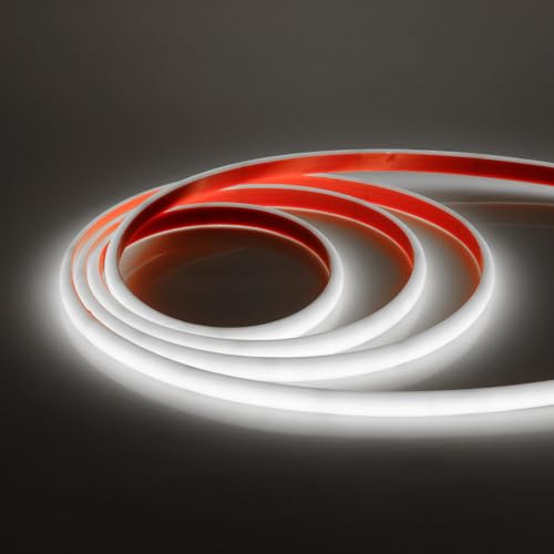 HEGEHE 12V Lumière au néon LED COB, 320Leds/m IP67 étanche Autocollant Super Lumineux Bandeau flexible Ruban LED Light Strip pour DIY Projets D'éclairage Intérieur et Extérieur (Blanc naturel, 5M)