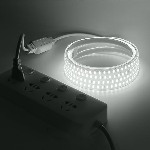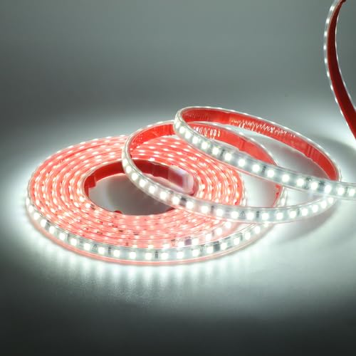 HEGEHE Ruban LED, Lumière au LED IP65 étanche 220V Bandeau flexible Ruban LED Light Strip pour Escalier, Chambre, Cuisine Intérieur/Extérieur (Blanc, 5M)