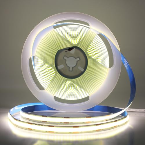 HEGEHE 12V Ruban LED COB (Cisaillement arbitraire), 528Leds/m Super Lumineux Bandeau flexible Ruban Décor LED Light Strip pour Escalier, Chambre, Noël, Fête, Intérieur (Blanc naturel, 5M)