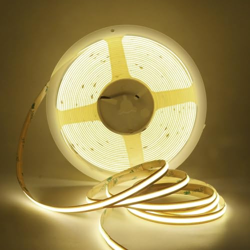 HEGEHE 12V Ruban LED COB Autocollant, 8MM Largeur 320 LEDS/M Bandeau Super Lumineux flexible Ruban LED Light Strip pour Escalier, Chambre, Noël, Fête, Intérieur (Blanc chaud, 5M)