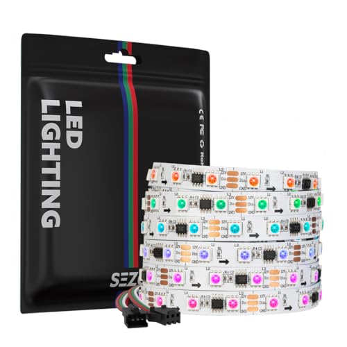 SEZO WS2811 RGB IC Ruban LED 5M 60LEDs/M DC12V Individuellement Adressable Light Strip Largeur 10mm Dimmable Couleur de rêve Barre lumineuse IP30 Non-étanche PCB Blanc pour décoration intérieure DIY