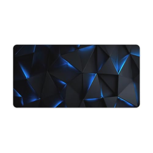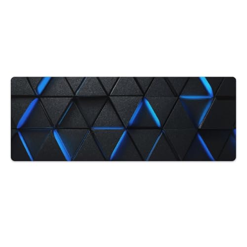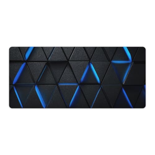 Tapis de souris gaming mural géométrique bleu à LED, base en caoutchouc antidérapante, format XL avec bords cousus, imperméable et lavable, idéal pour le bureau, la maison ou les jeux vidéo (80 x 30 c