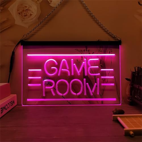 Zysfadc Game Room Enseigne Néon pour Décoration Murale – Néon LED Dimmable (USB) pour Chambre, Bar, Espace Gaming Et « Man Cave »,Rose,30x20cm