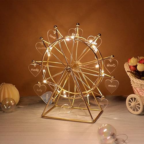 TopGlory Nom personnalisé Snowman Grande Roue LED Night Light Christmas Decoration Custom Vintage Desktop Fireplace Family Party (Bonhomme de Neige) 235x210x95MM