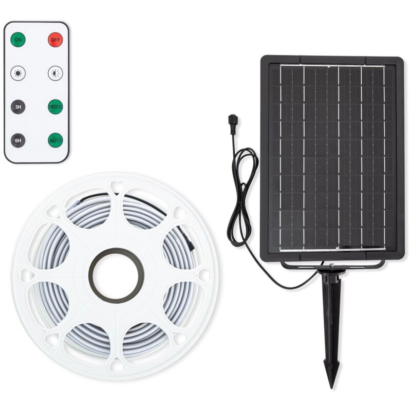 Ruban LED solaire 1,5 m avec 85 lumens – Panneau solaire déporté – IP 44 – Autonomie jusqu'à 6h – Interrupteur ON/OFF – Watt & Home