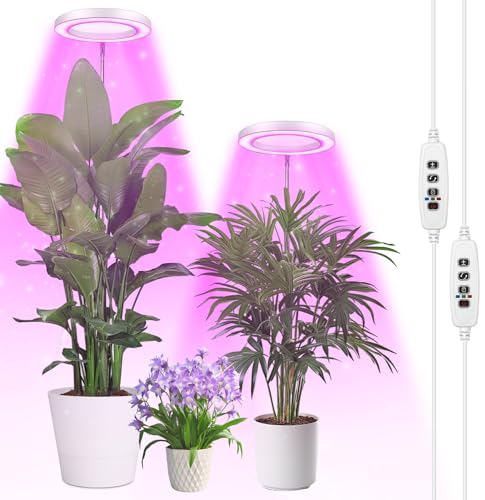 Qoolife Lampe Végétale LED à spectre complet pour plantes d'intérieur, 155 cm, hauteur réglable avec 72 LED, 3 niveaux de luminosité à intensité variable, minuterie 3/9/12 heures 2 paquets Blanc