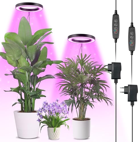 Qoolife Lampe Végétale LED à spectre complet pour plantes d'intérieur,155 cm, hauteur réglable avec 72 LED, 3 niveaux de luminosité à intensité variable, minuterie 3/9/12 heures 2 paquets Noir