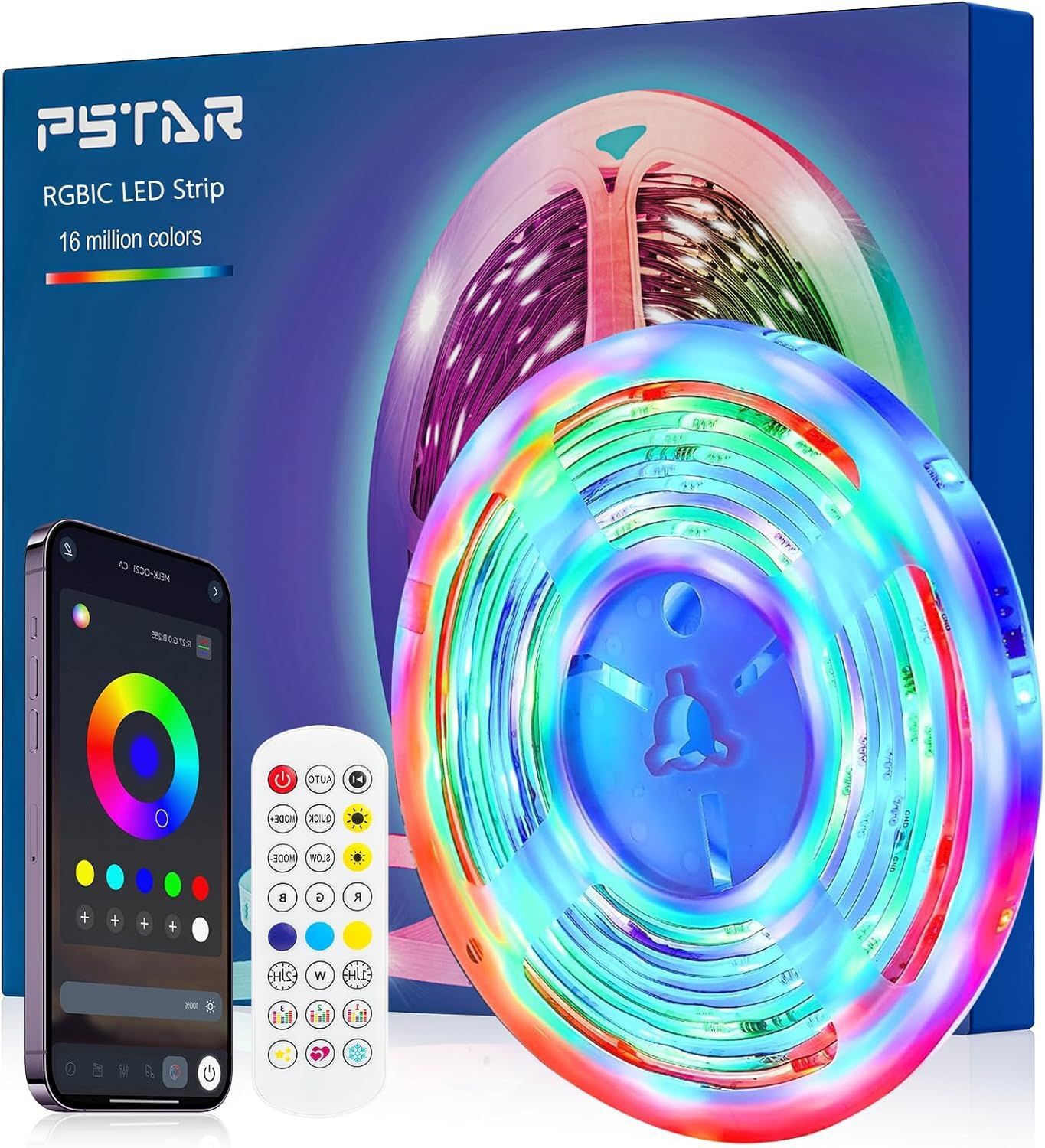 PSTAR RGBIC Bande LED 4m, Rétroéclairage LED pour TV et PC de 50 à 70 pouces, Applications and Télécommande, Musique Synchroniser, USB Intégration IC Éclairage for TV Décoration