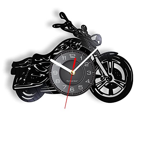 Smotly Horloge murale en vinyle, forme de moto avec fonction veilleuse LED, horloge murale cadeau pour les amateurs de voiture décoration de la maison (noir)