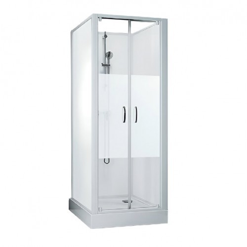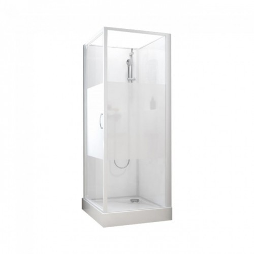 Leda - Cabine de douche carré 80x80cm portes coulissante angle verre opaque central - IZI BOX 2