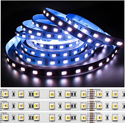 Tesfish Ruban LED 24V, 5 en 1 Puce RGB + CCT, RGB + Blanc + Blanc Chaud (2800K à 6500K) RGBCW 5M Couleurs Mixtes Bande Lumineuse LED IP20 300 LEDs Bande LED pour Chambre, Décoration de Cuisine