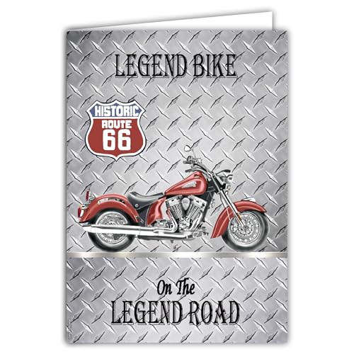 IETSCPXL-6606N MAXI GRANDE CARTE XL 22x31cm Moto ROUTE 66 Licence Officielle Legend Bike on the Legend Road - Intérieur Blanc 44x31cm - Avec Enveloppe - Départ Retraite Anniversaire