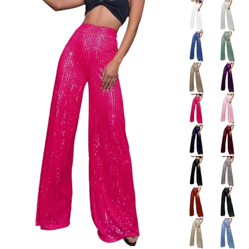 Pantalon à paillettes pour femme - Taille haute - Pantalon évasé - Disco Nouvel An - Fête - Festival - Pantalon taille haute - Tenue sexy - Club brillant et élégant - Legging tendance XS à XXL