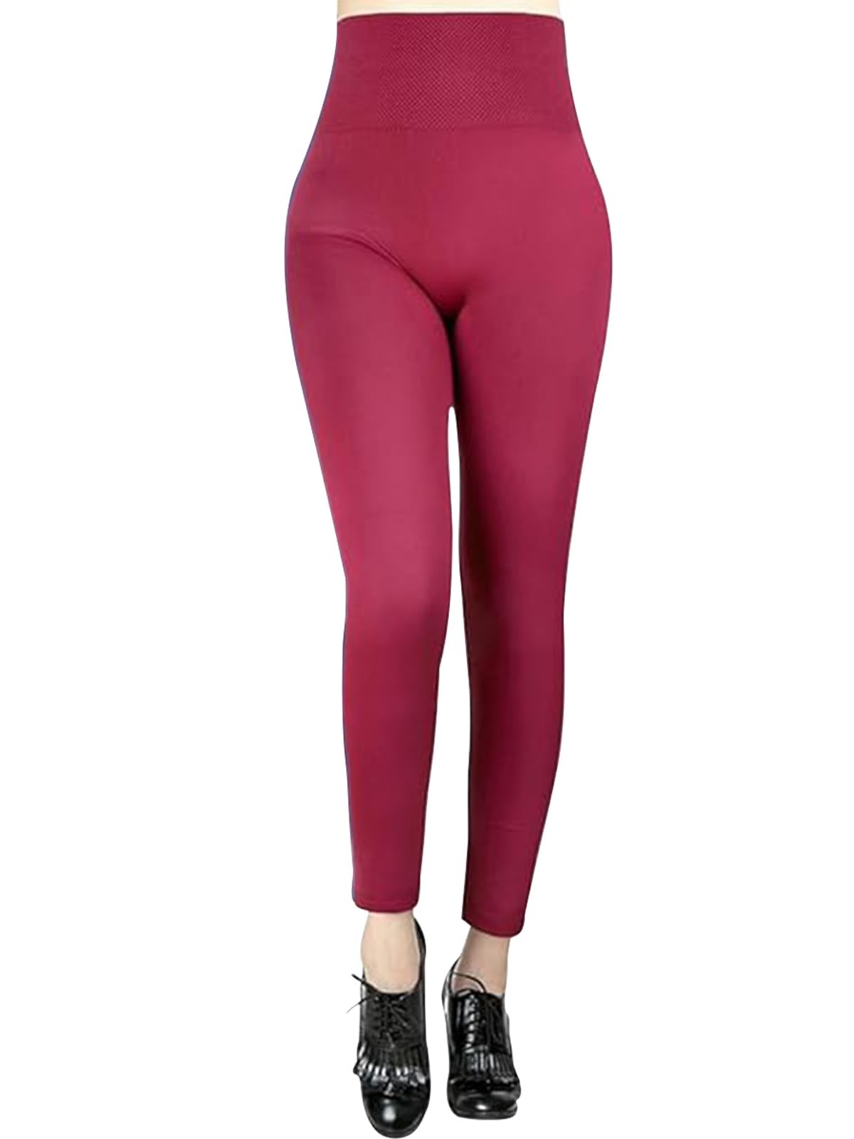 Minetom Legging Femmes Hiver Collant Chaud Doux Doublure Polaire Leggings Thermique Taille Haute Élastiques Extensible Pantalon Z Vin Rouge L