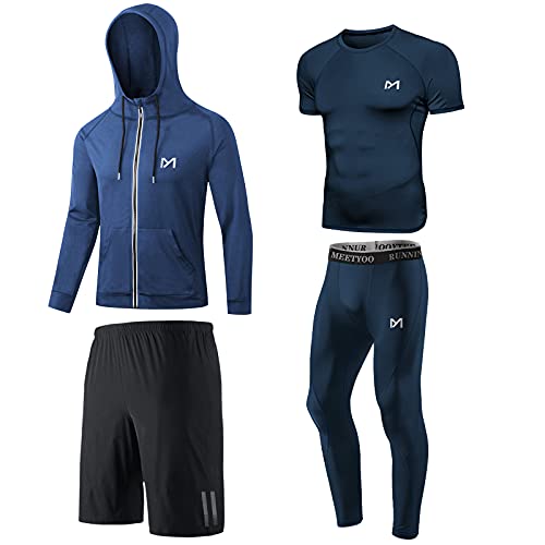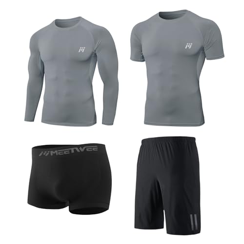 MEETYOO Tee Shirt Compression Homme, Legging Sport Short Fitness T Shirt Manche Longue Veste Collant Gym Running Vetement pour Jogging Musculation