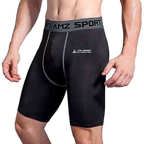 AMZSPORT Short de Compression pour Homme - Collant de Course à Pied - Couche de Base - Legging d'entraînement Professionnel - Noir - Taille M